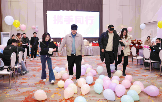 參與此次活動的20名單身男青年來自工程處、工程建設(shè)公司、臨渙礦等單位近年來新入職高校畢業(yè)生,18名單身女青年來自淮北市教育、金融、醫(yī)療系統(tǒng)單位。活動設(shè)置了“穿越呼啦圈”“搶紙杯”“攜手同行”“踩氣球”“報紙拔河”等年輕人喜聞樂見的互動小游戲,以小組為單位增添競技性,讓每個人的參與熱情持續(xù)高漲。在現(xiàn)場主持人的引導(dǎo)下,游戲“熱身”產(chǎn)生了很好的效果,男女青年從陌生到熟絡(luò),迅速打成一片,紛紛敞開心扉,大膽展示自己、表達(dá)想法,整個活動氛圍輕松愉悅,充滿了歡聲笑語。