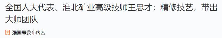 因為技術出眾、工作出色,2017年,王忠才被評為淮北礦業集團工匠大師。2021年,在中共安徽省委組織部、安徽省人力資源和社會保障廳正式公布的第二屆江淮杰出工匠名單中,王忠才榜上有名。